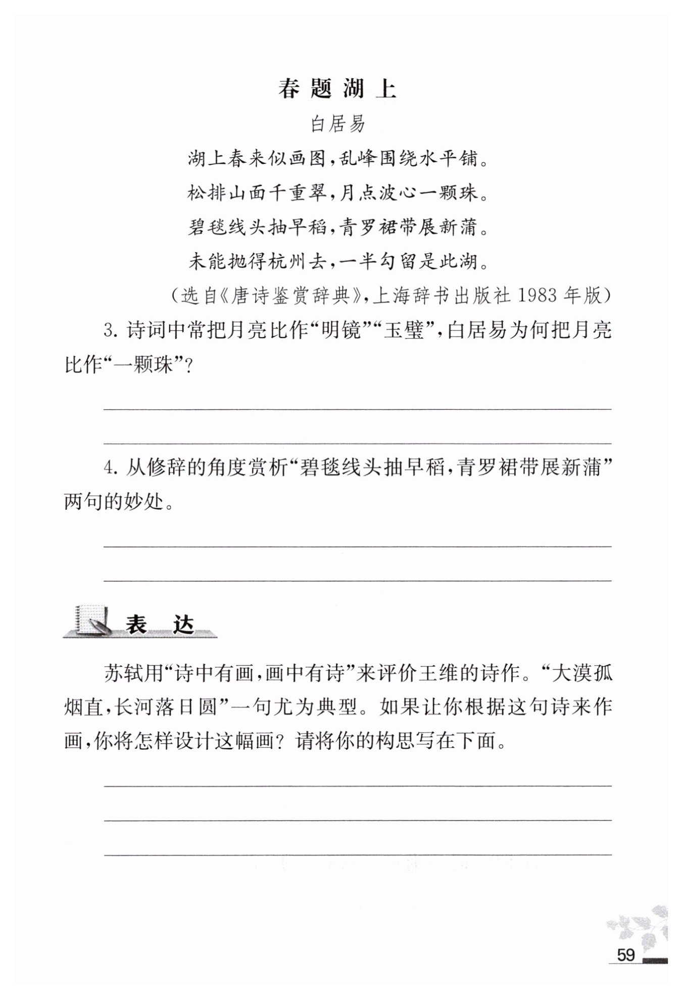作“青羅裙”上的飄帶,生動形象地描繪出湖畔農(nóng)田的清新美麗,表現(xiàn)了詩人對西湖的熱愛和眷戀,以及對鄉(xiāng)村生活的喜愛之情。