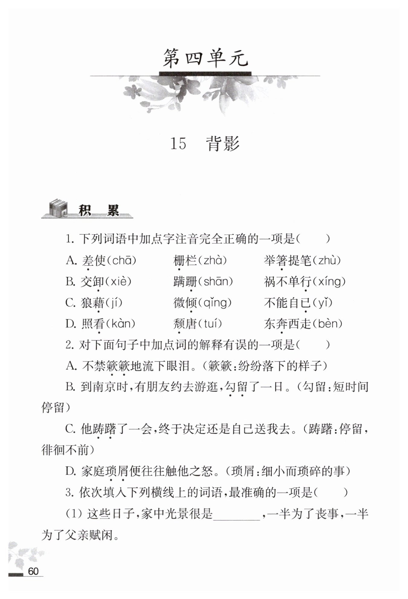 B(A. 差使 chāi C. 微傾 qīng D. 東奔西走 bēn)