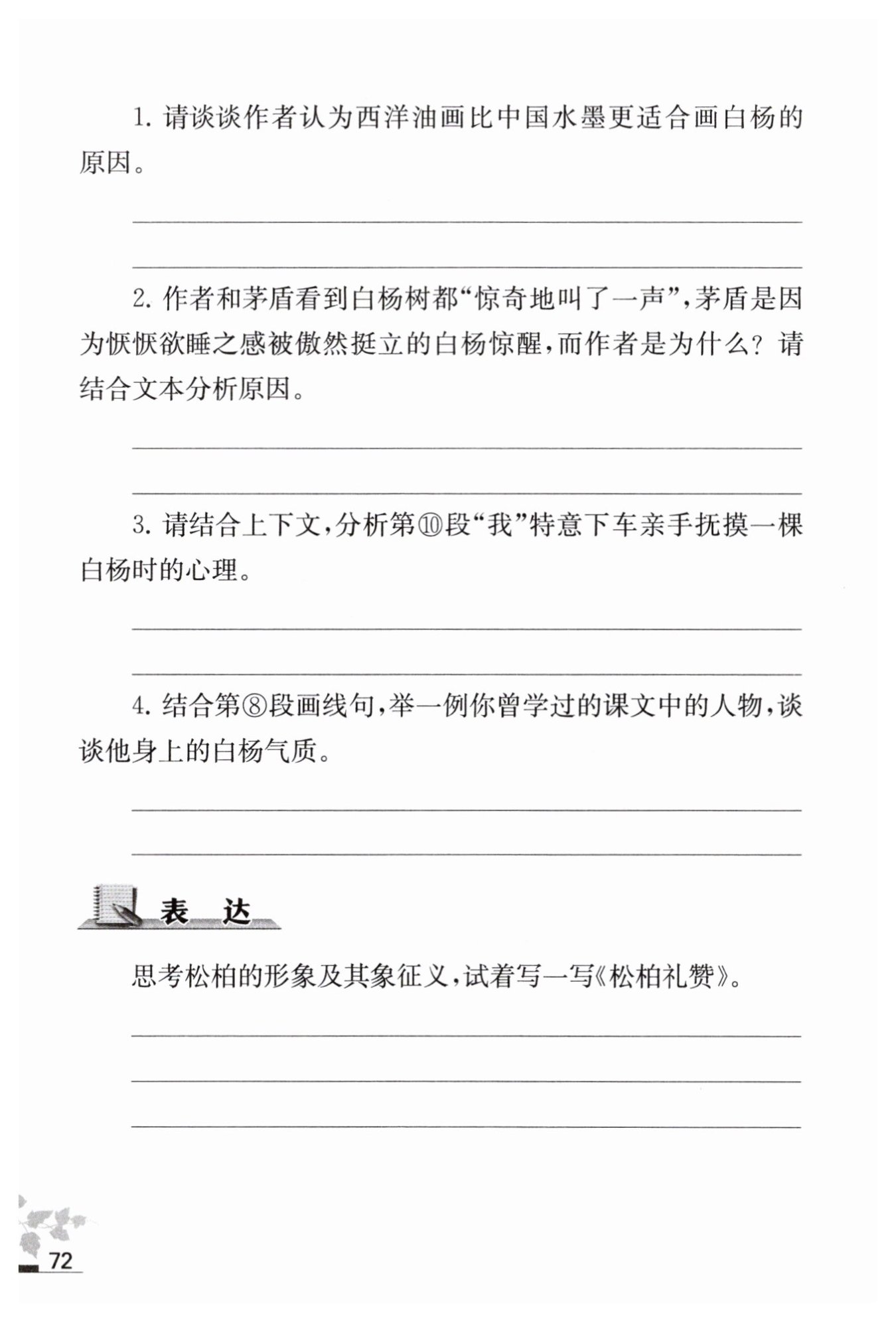 存。親眼看到無(wú)比崇敬的白楊,自然喜悅;消除了對(duì)白楊"晦暗蒼涼"的誤解,自然喜悅;看到白楊的疏朗與簡(jiǎn)潔,聯(lián)想到謙謙君子,自然興奮。