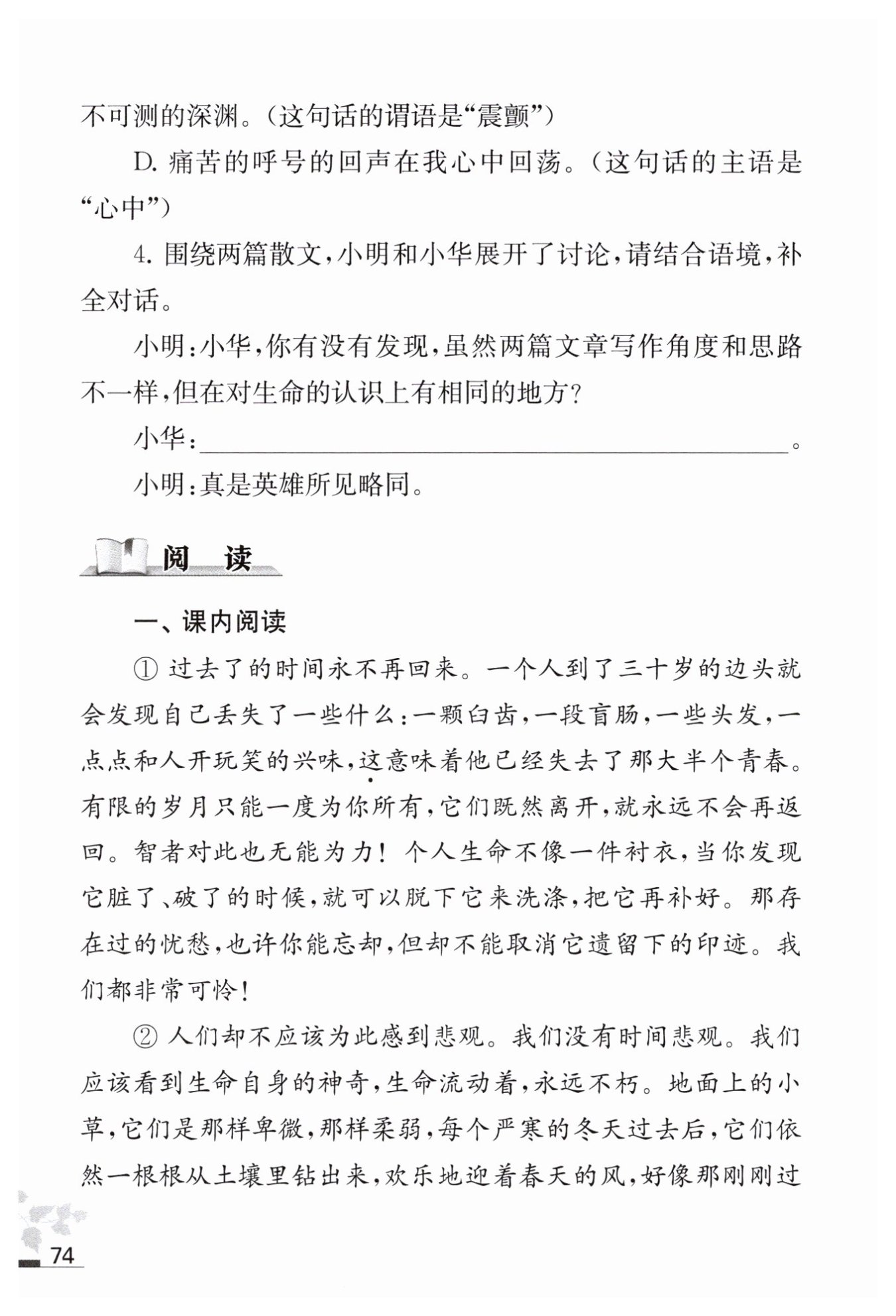 兩篇文章都認(rèn)為生命是短暫而美好的(或生命中會遇到種種挫折)