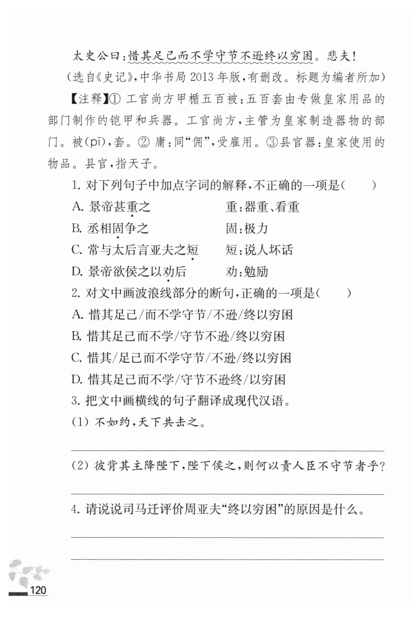 司馬遷評(píng)價(jià)周亞夫"終以窮困"的原因是:他自滿自足而不虛