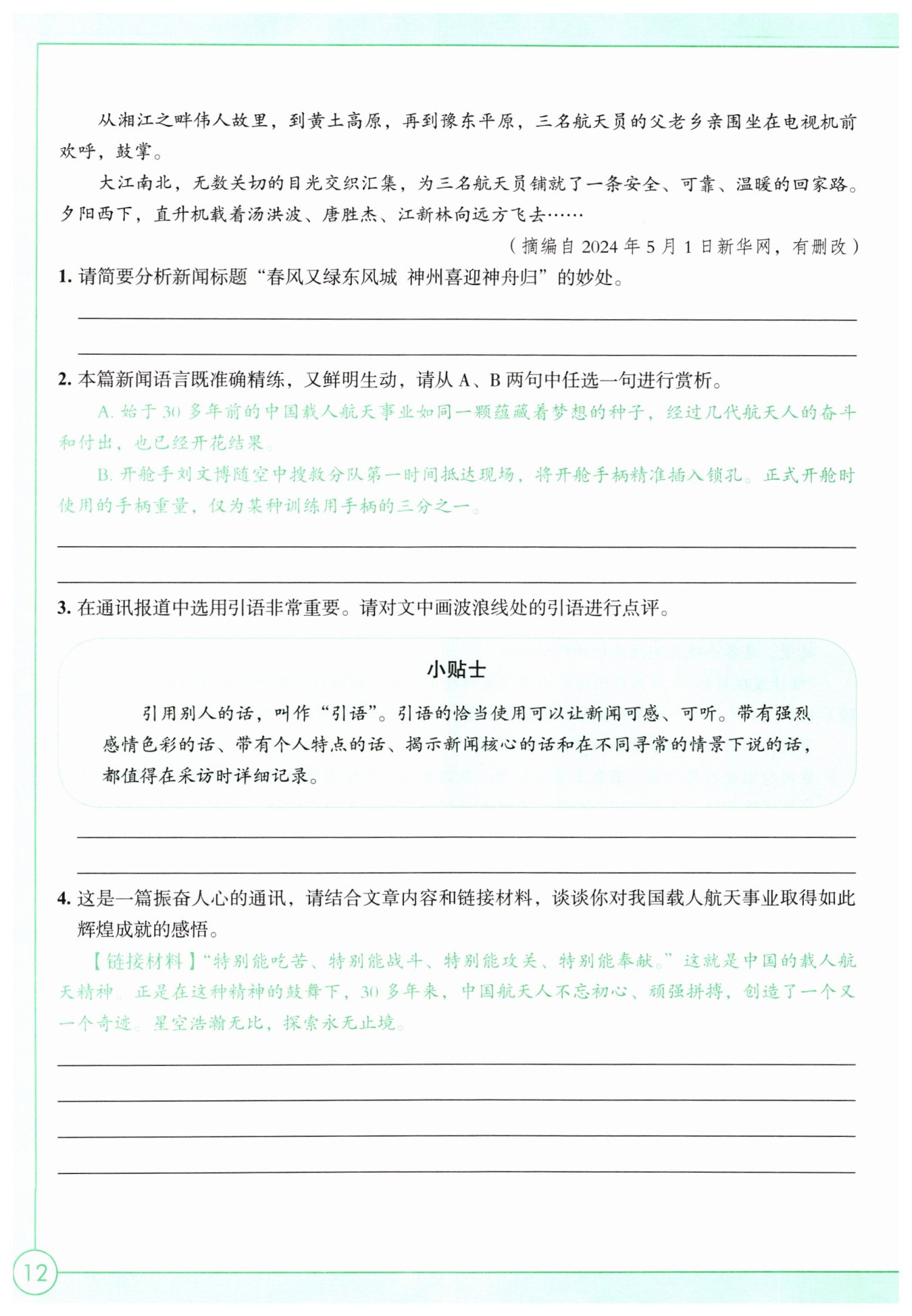 A.運用比喻修辭,贊美了航天人的奮斗和付出,體現(xiàn)了新聞?wù)Z言的鮮明生動。 B.語言準確精練,