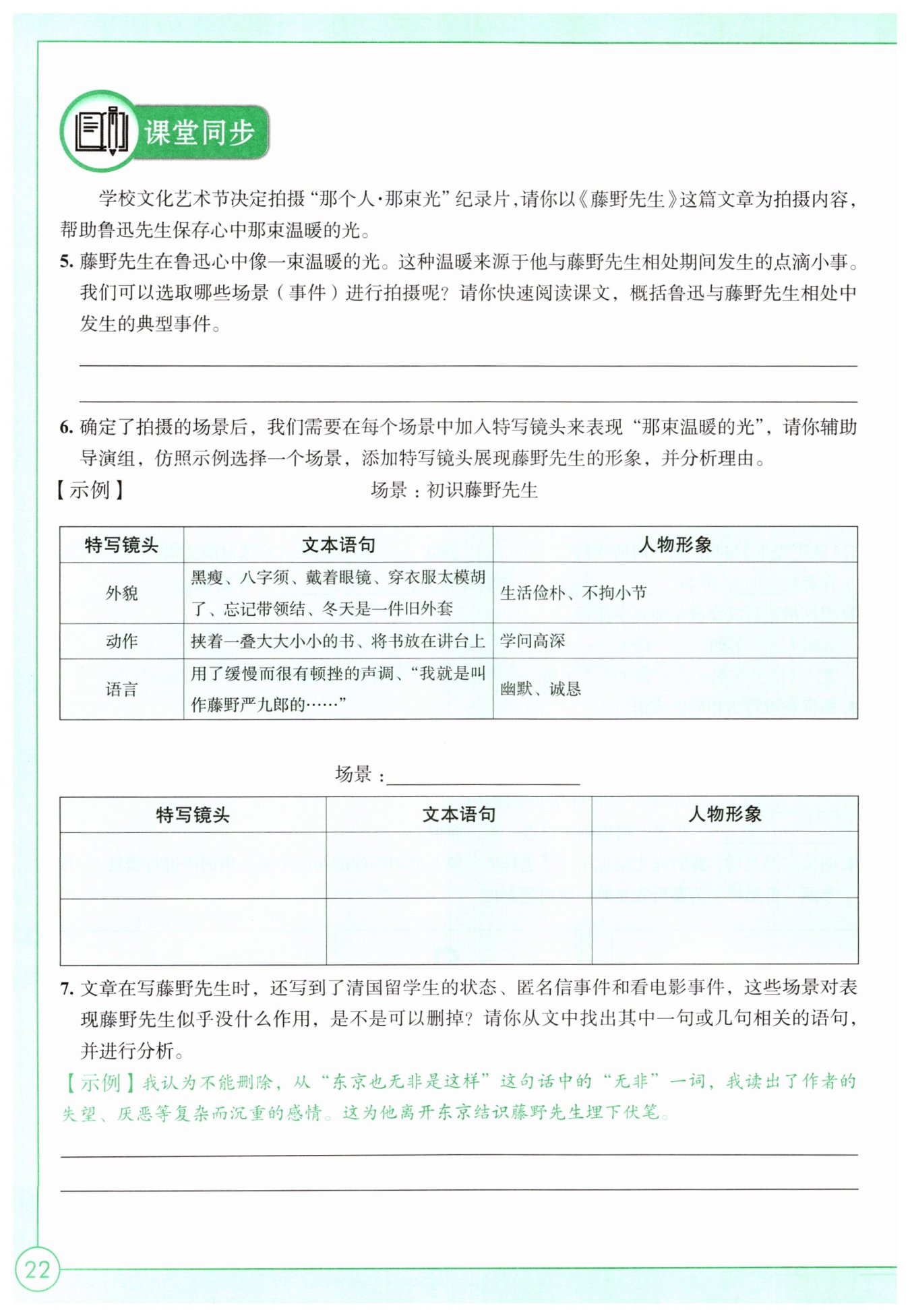 7. 【示例一】我認為不能刪除。從“上野的櫻花爛熳的時節(jié)……實在標致極了”這段話中“花下”“成群結(jié)隊”“標致”等詞,我讀出了作者對“清國留學生”輕薄、浮華丑態(tài)的失望。對他們的厭惡與嘲諷,為他離開東京結(jié)識藤野先生埋下伏筆。
