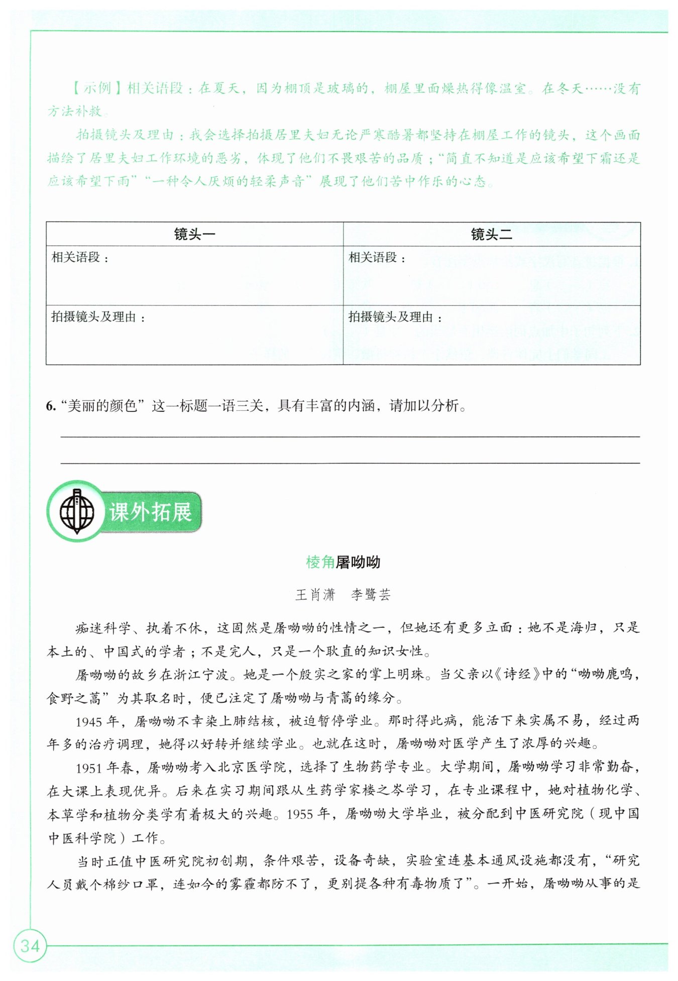 ①指鐳顏色之美:居里夫人提煉的鐳的略帶藍色熒光的美麗。 ②指心情之美:居里夫人發(fā)現(xiàn)