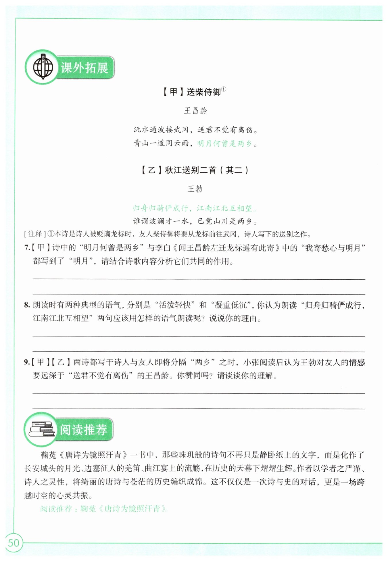 愁心追隨王昌齡而去。王昌齡詩(shī)中的“明月”能被兩人共有,仿佛兩人不曾分離。