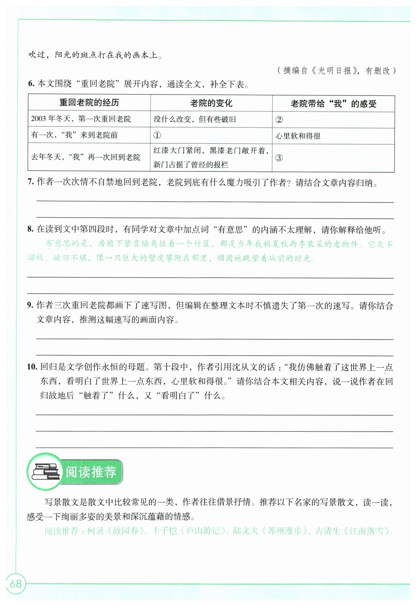 ①作者觸著了在老院中成長的美好回憶(往事)。 ②作者看明白了老院和老院中的記憶雖已遠(yuǎn)