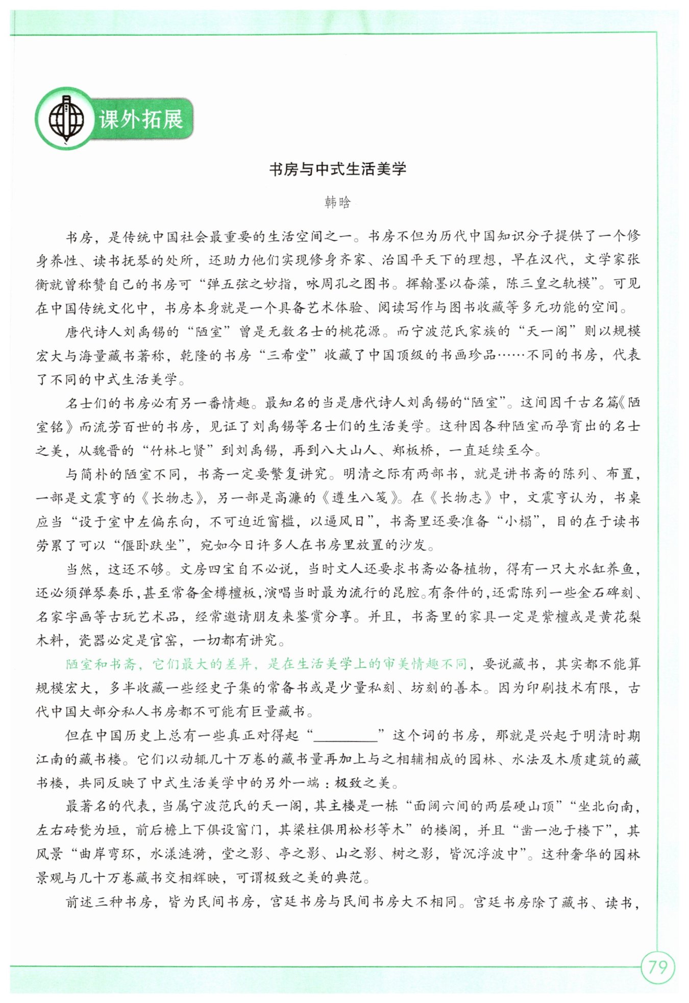 9. 不能刪去。“最大”限制程度,它說明了陋室與書齋除了生活美學(xué)上的審美情趣差異外,還有其他方面的差異。刪去就不能說明這一點(diǎn),這體現(xiàn)了說明文語言的準(zhǔn)確性。