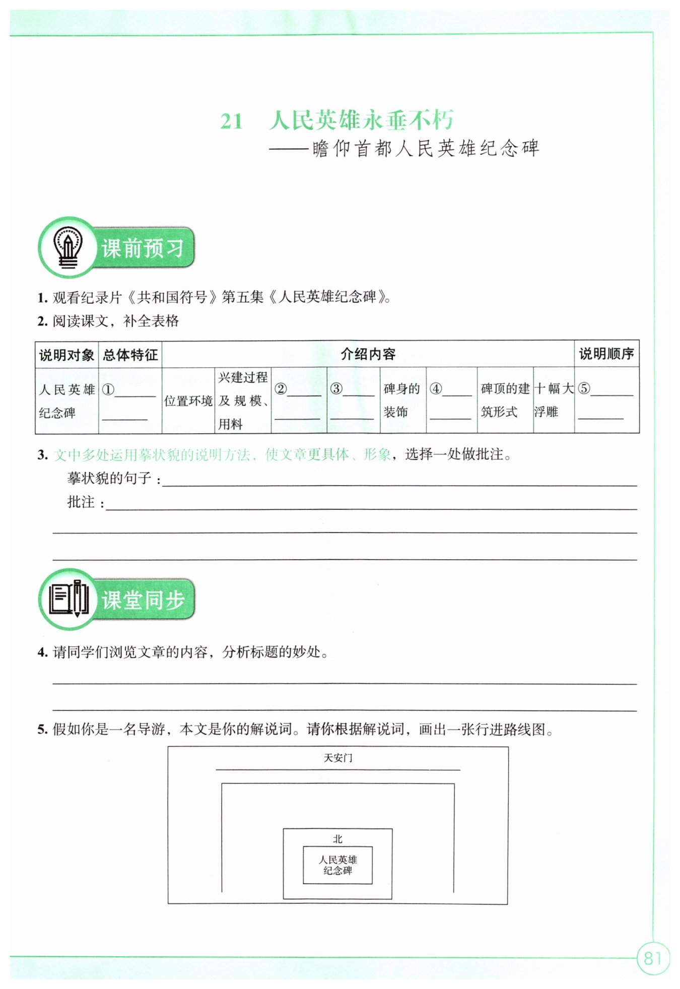 仰首都人民英雄紀(jì)念碑”表明了本文說明的對(duì)象,表達(dá)作者對(duì)革命先烈萬分崇敬的心情。