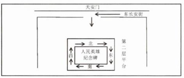 ①巍峨、雄偉、莊嚴(yán) ②碑的四周欄桿 ③碑的正面題詞和背面碑文 ④小碑座四周的浮雕 ⑤空間順序