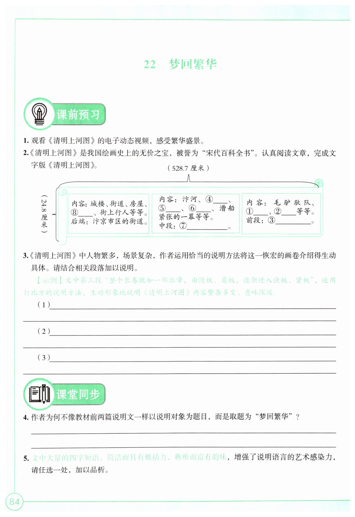 無(wú)有不符”,運(yùn)用舉例子、引資料的說(shuō)明方法,具體準(zhǔn)確地說(shuō)明《清明上河圖》寫實(shí)性很強(qiáng),增強(qiáng)說(shuō)服力。