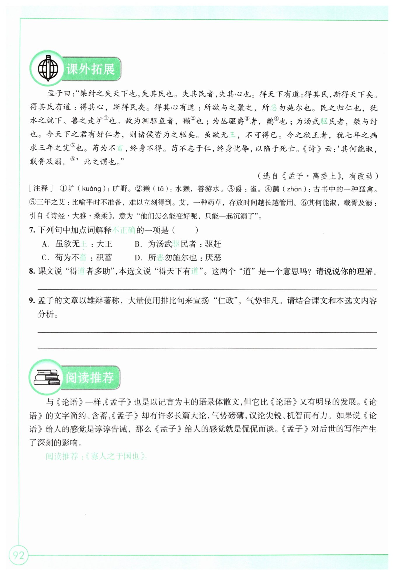 ①這兩個“道”不是一個意思。②前者為“能夠施行治國的正道”,即“仁政”,后者為“方法”。