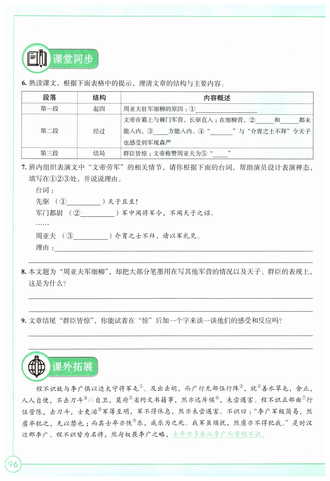 ②寫天子之贊、群臣之驚,側(cè)面烘托出周亞夫恪盡職守、剛正不阿、治軍有方的形象。
