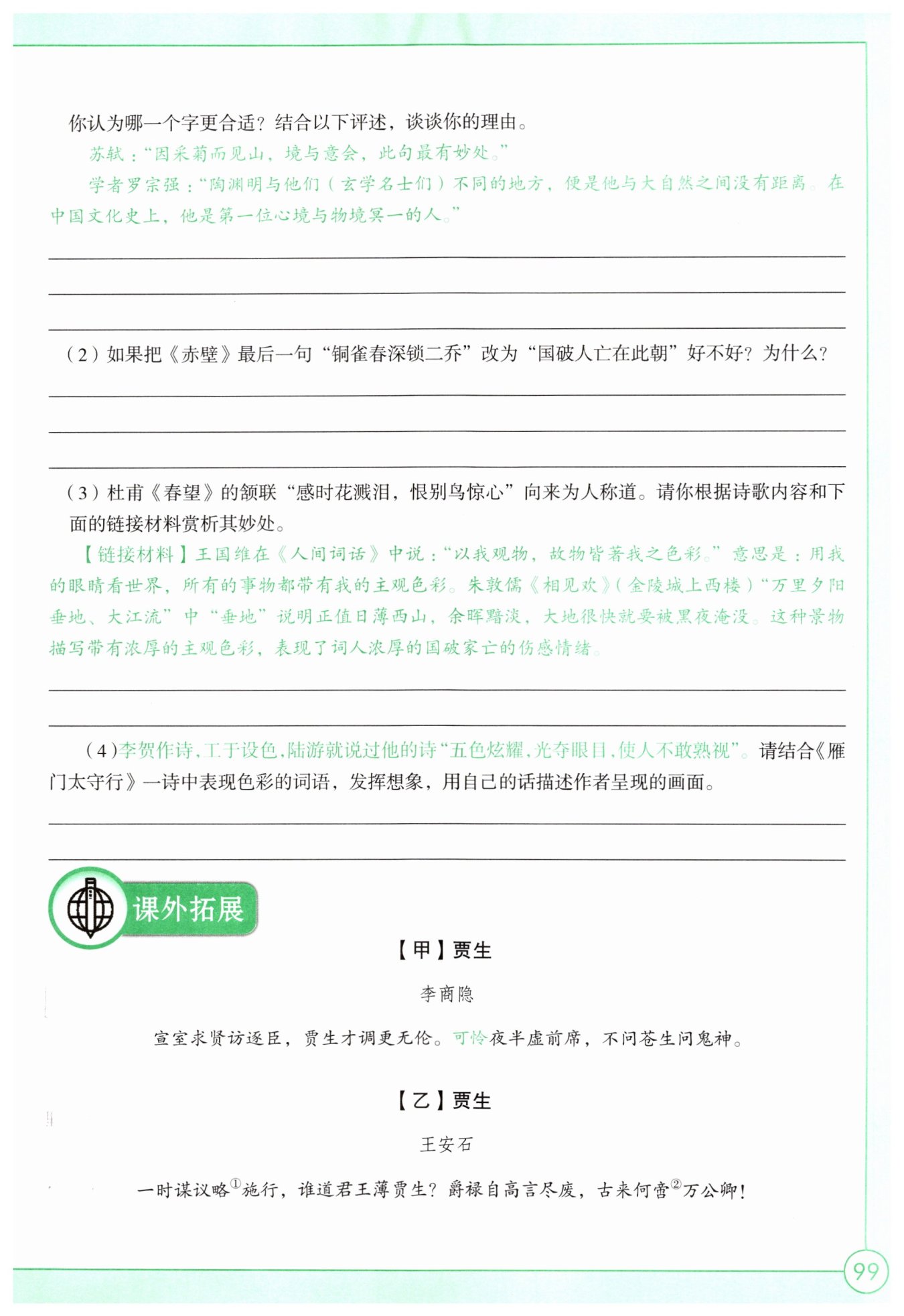 此刻面對(duì)殘破的都城,不知官軍何時(shí)才能平定叛亂,不知妻兒在兵荒馬亂中如何度日······種種念頭困擾著他,他怎能不見(jiàn)花而落淚,聞鳥(niǎo)而驚心呢?這自然是詩(shī)人移情于物的結(jié)果,與鏈接材料中“以我觀物,故物皆著我之色彩”的觀點(diǎn)相符。作者杜甫在景物描寫(xiě)中流露出憂國(guó)傷時(shí)、思親念家的情感。