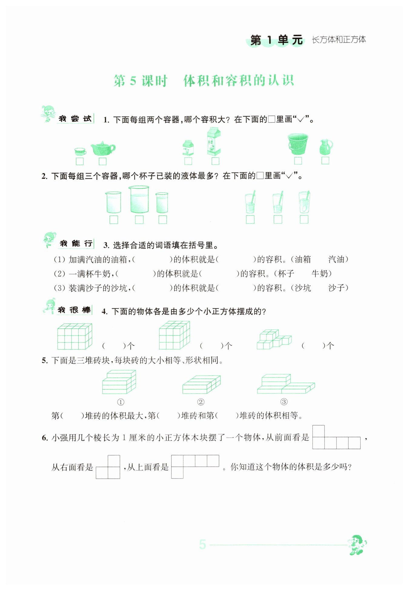 1×1×1×6=6 (立方厘米)
