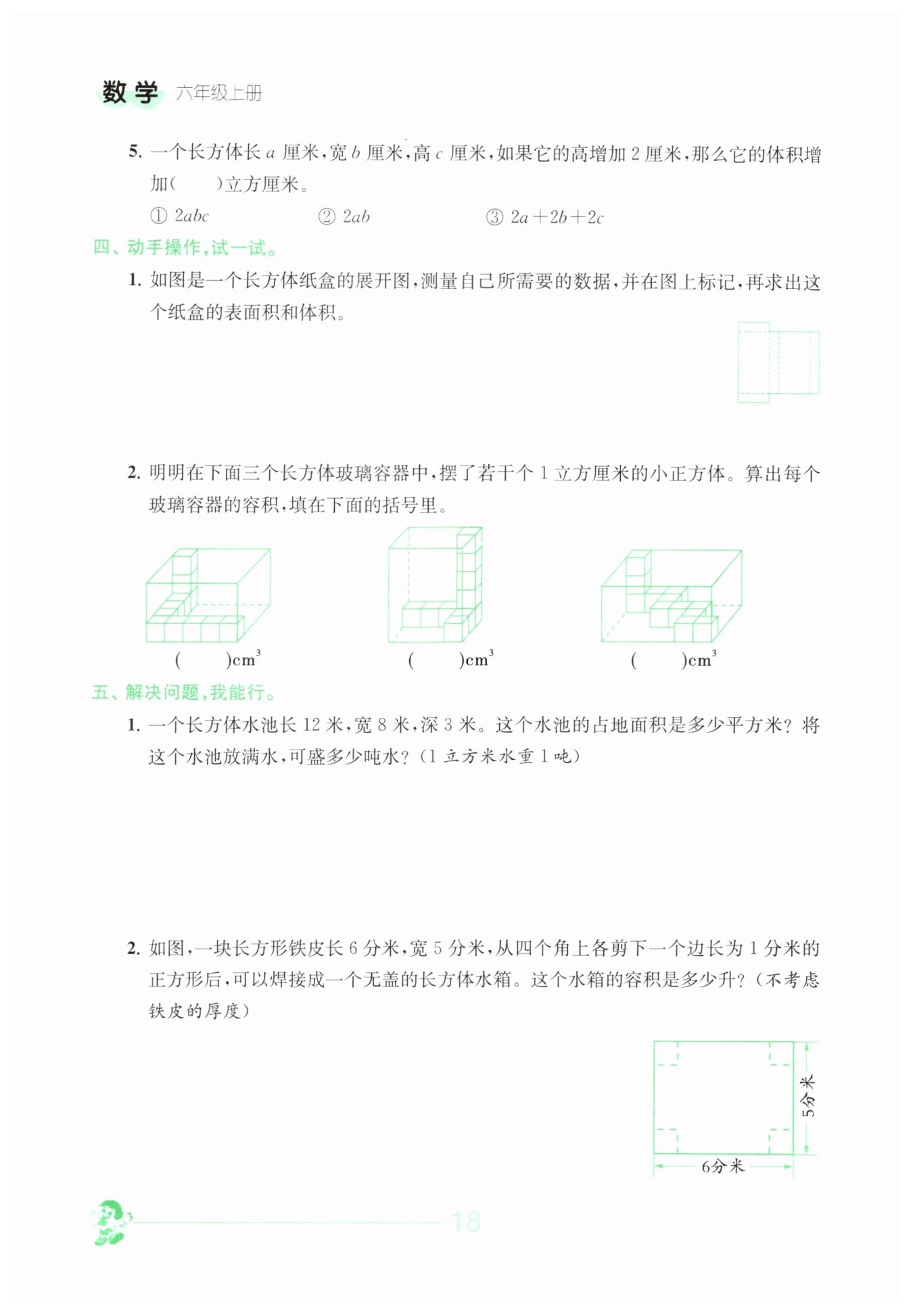 答:這個(gè)紙盒的表面積是2.8平方厘米,體積是0.196立方厘米。