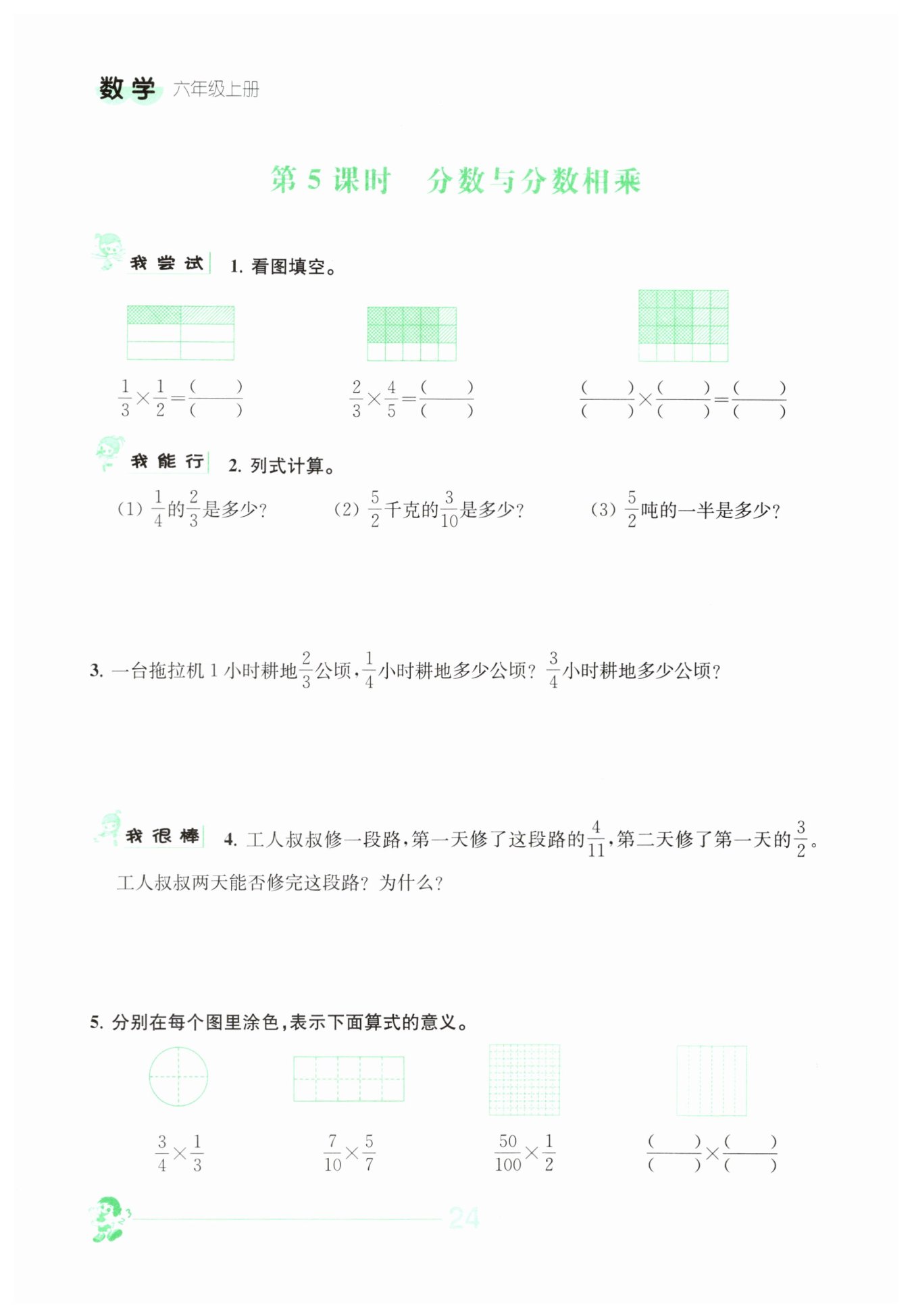 ?$ 答:\frac {1}{4}小時耕地\frac {1}{6}公頃,\frac {3}{4}小時耕地\frac {1}{2}公頃。$?