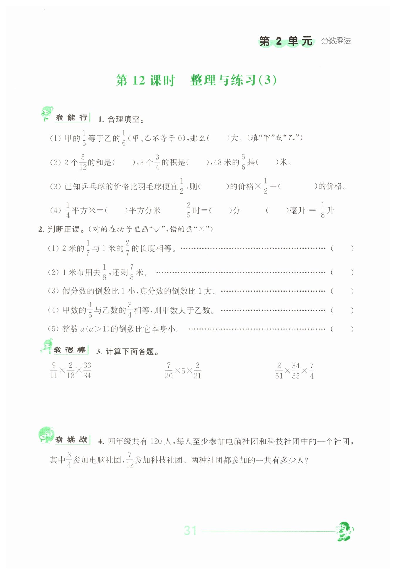 ?$ 120×(\frac {3}{4}+\frac {7}{12}-1)=40($?人?$)$?