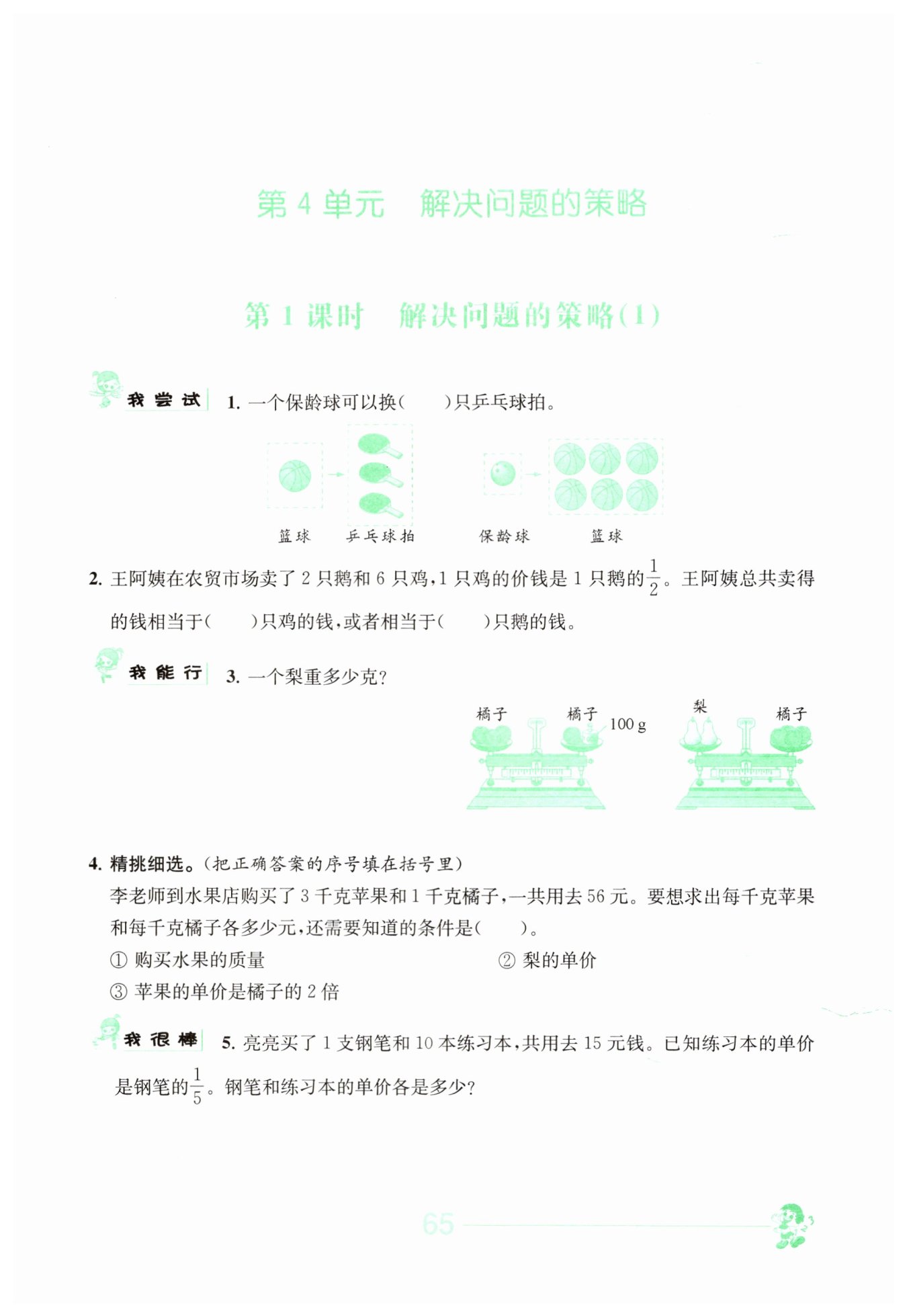 答:鋼筆的單價是?$5$?元,練習本的單價是?$1$?元。