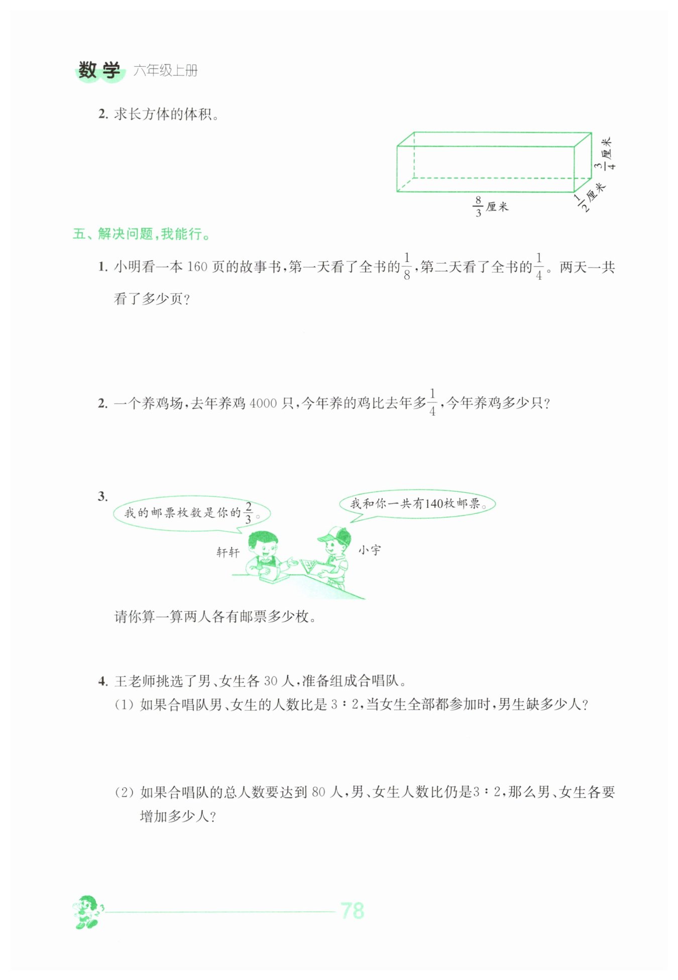 ?$ \frac {8}{3}×\frac {1}{2}×\frac {3}{4}=1($?立方厘米?$)$?