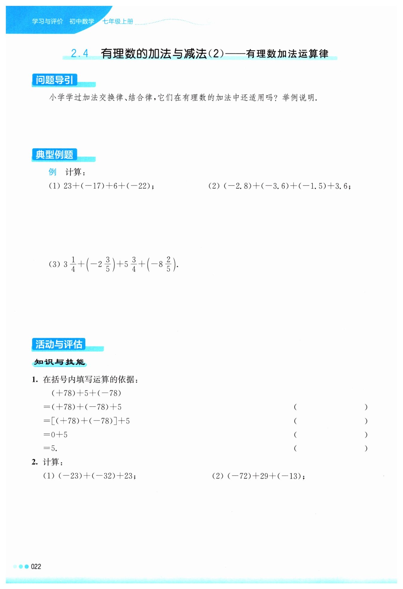 1. 首先,我們觀察表達(dá)式 $(+78)+5+(-78)$,根據(jù)加法的交換律,我們可以重新排列這個(gè)表達(dá)式,得到 $(+78)+(-78)+5$。這一步的依據(jù)是加法交換律。