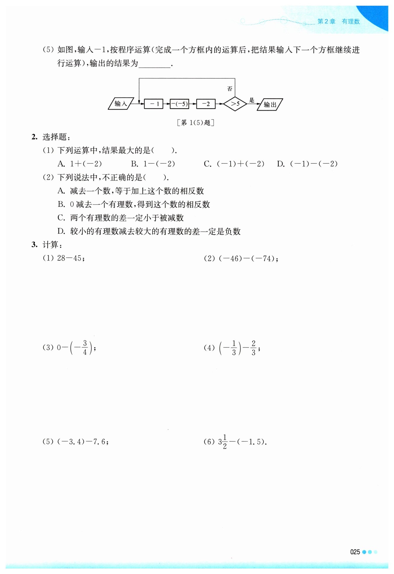 (2)A.有理數(shù)減法法則,正確;B.0減去一個(gè)數(shù)等于加上這個(gè)數(shù)的相反數(shù),即得這個(gè)數(shù)的相反數(shù),正確;C.例如3-(-1)=4,4>3,差大于被減數(shù),故C錯(cuò)誤;D.較小數(shù)減較大數(shù),結(jié)果為負(fù),正確。
