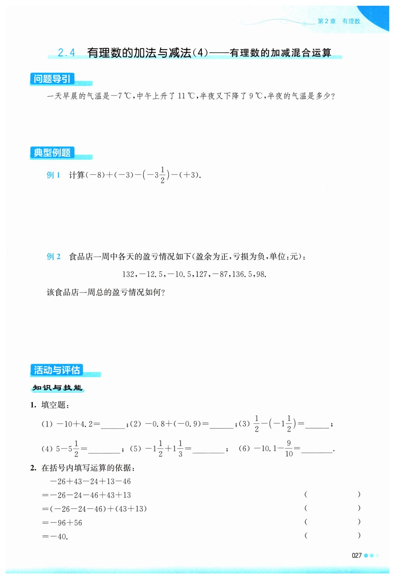 (2) 對于 $-0.8 + (-0.9)$,兩個負數(shù)相加,結果為負的絕對值之和,即 $-0.8 + (-0.9) = -1.7$。