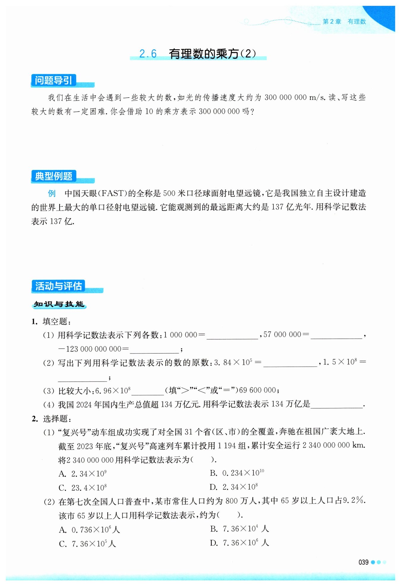 (1) 用科學(xué)記數(shù)法表示數(shù)時,需要將這個數(shù)表示為一個大于等于1且小于10的小數(shù)與10的冪的乘積。