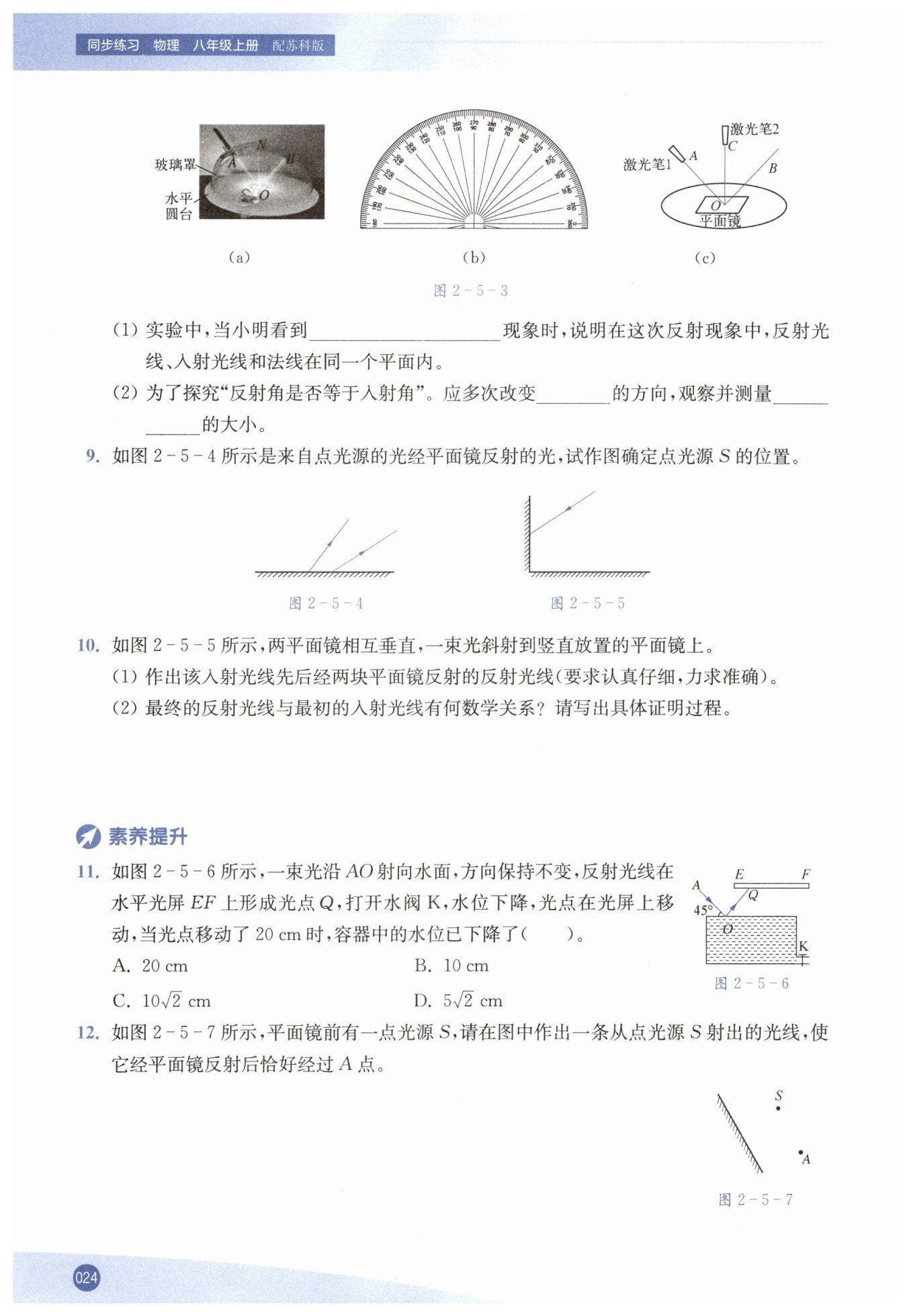 設(shè)水位下降高度為$h$,入射光線與水面夾角為$45^\circ$。水位下降后,入射點移動到$O'$,反射光線平移,光點移動距離$QQ' = 20\ cm$。由幾何關(guān)系知,$QQ' = 2h\tan45^\circ$,$\tan45^\circ=1$,則$20 = 2h$,解得$h = 10\ cm$。