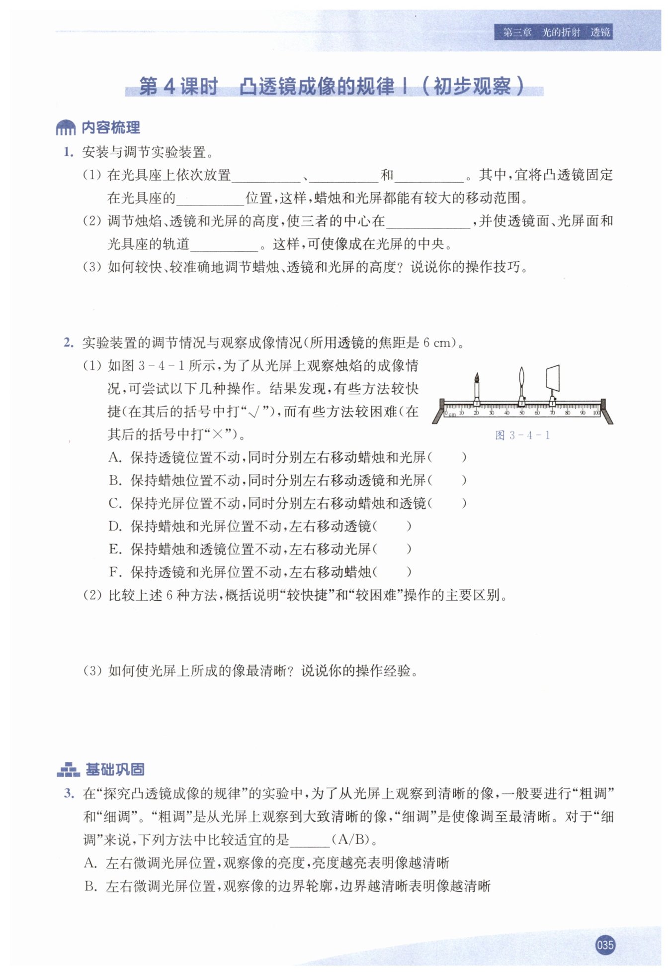 當光屏上出現像,且感覺大致清晰時,再左右微調光屏位置,直到像最清晰為止。