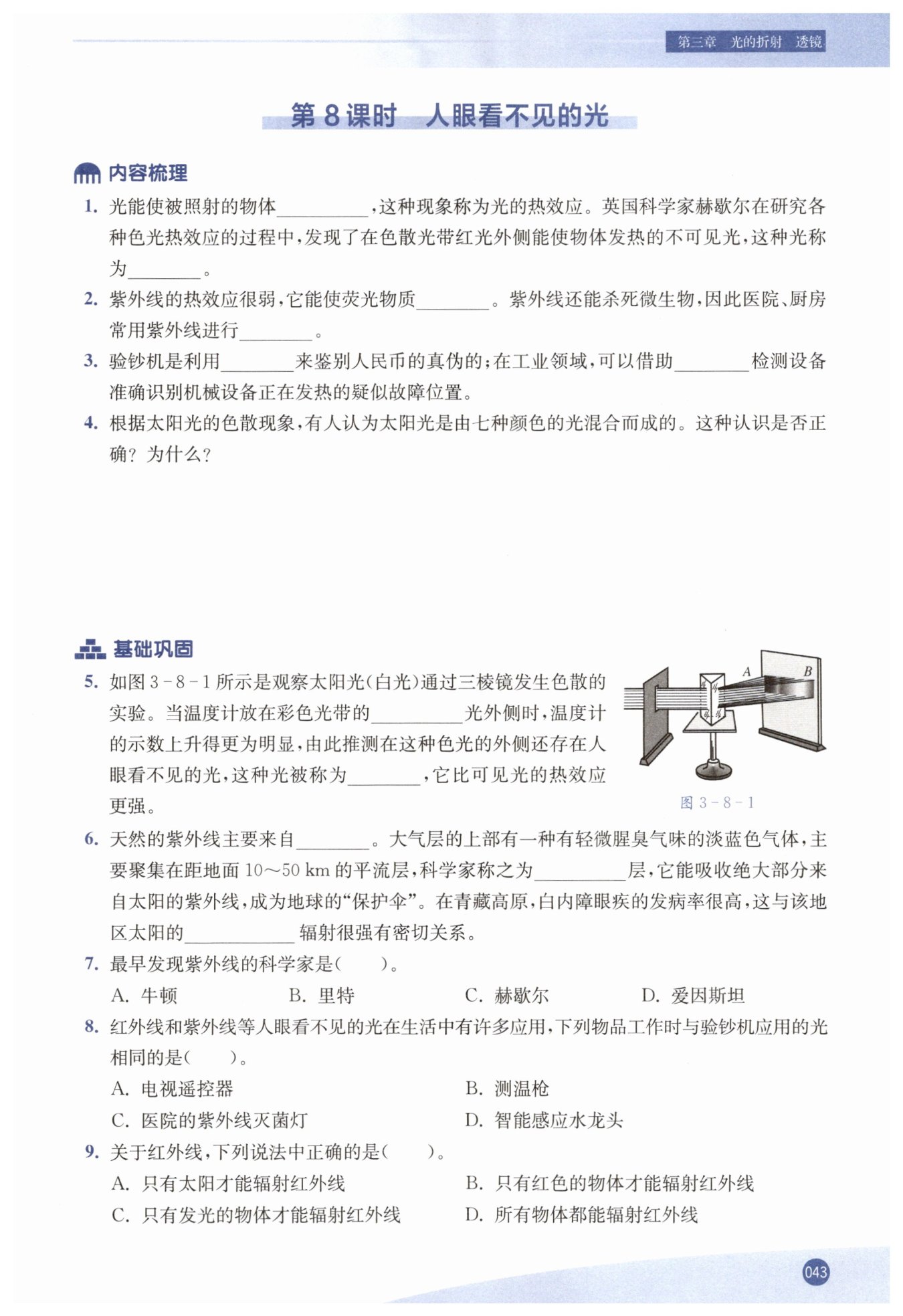 不正確。因?yàn)槠叻N色光只是太陽光中的可見光,太陽光中還有不可見光,如紅外線、紫外線等。