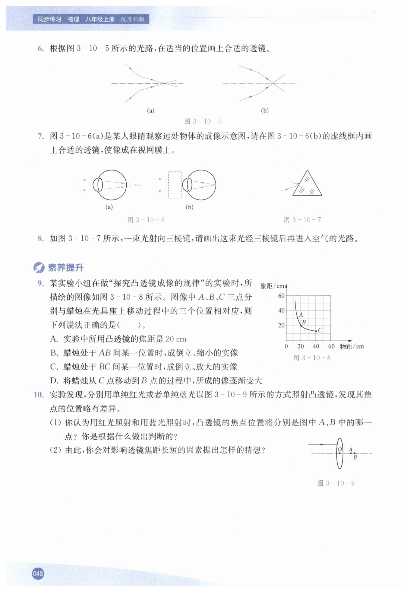 BC間物距$u > 20\ cm$,即$u > 2f$,此時成倒立、縮小的實像,C錯誤;