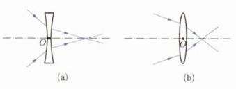 (1)紅光焦點的位置是圖中的B點,藍(lán)光焦點的位置是圖中的A點。判斷的依據(jù):透鏡可以看作是三棱鏡的組合,做光的色散實驗時,光通過三棱鏡時總是向其底邊方向偏折,并且藍(lán)光比紅光的偏折程度大。