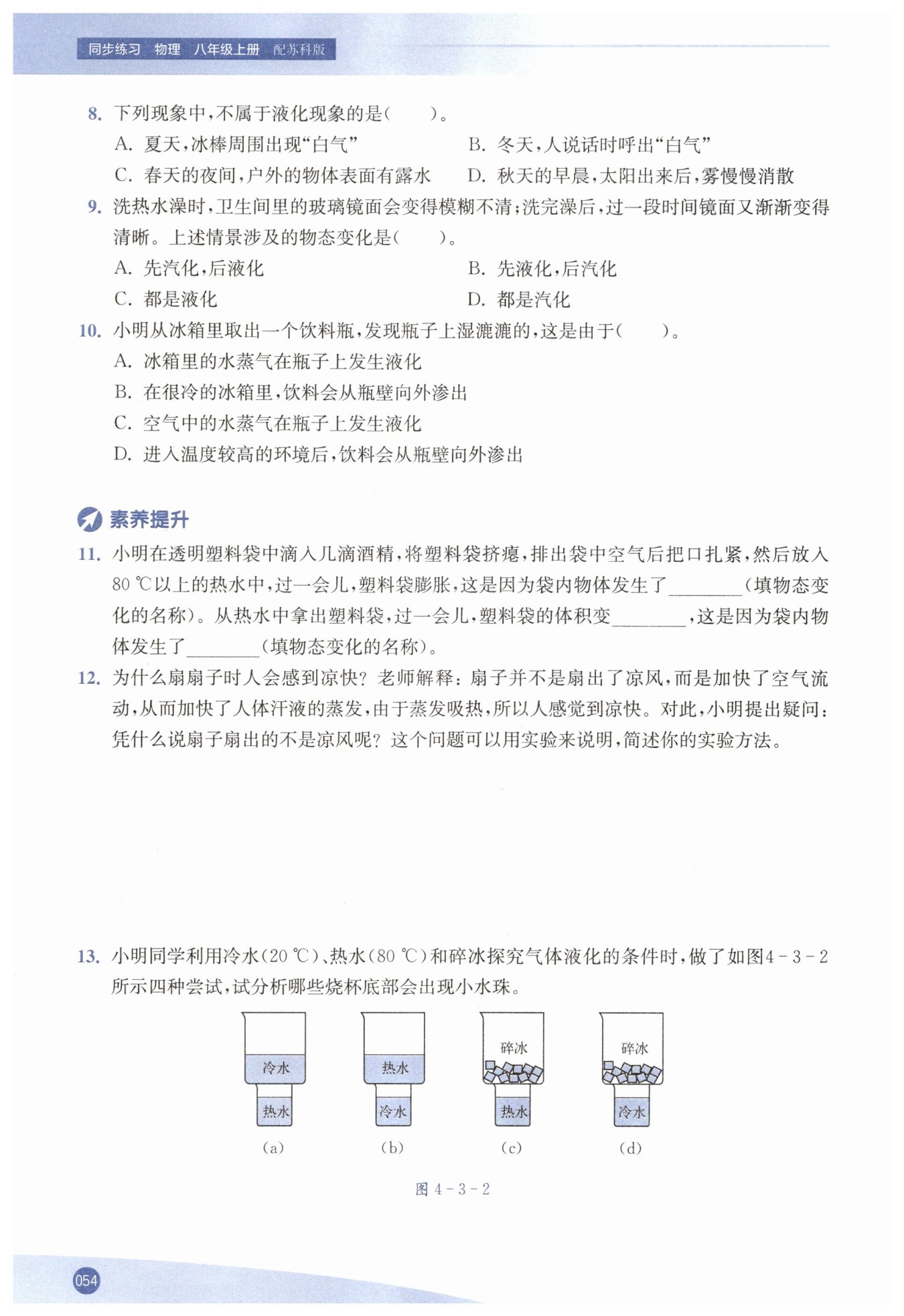 圖(d)中,冷燒杯中的水蒸氣上升遇到溫度更低的燒杯,就會(huì)液化,因此會(huì)出現(xiàn)小水珠。