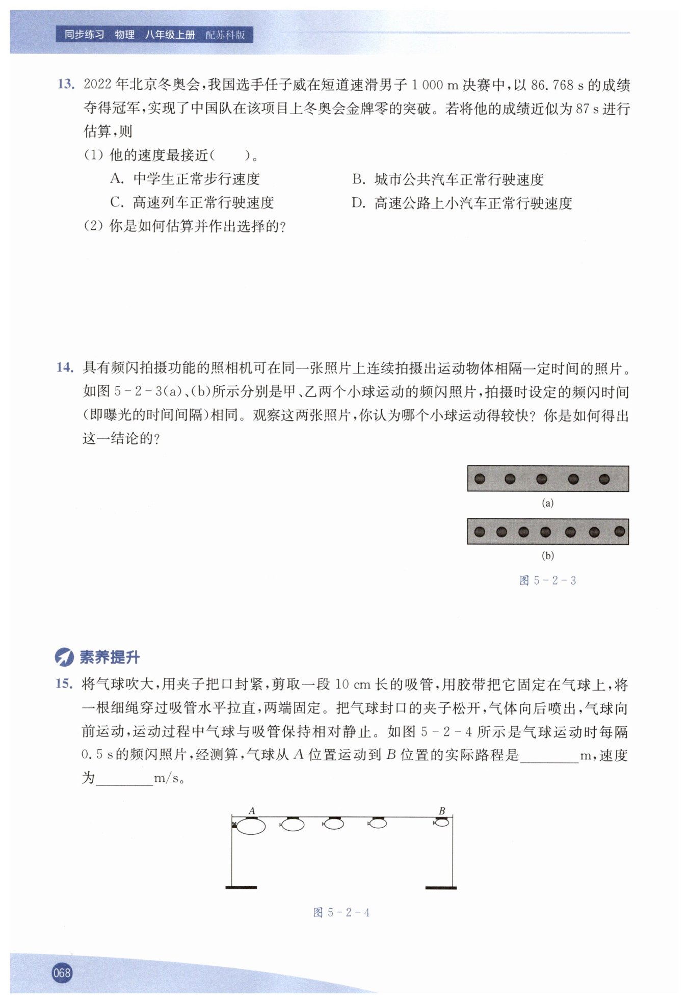 $以t=87 s近似估算出速度v11.5 m/s≈41.4km/h,通過比較作出選擇 $