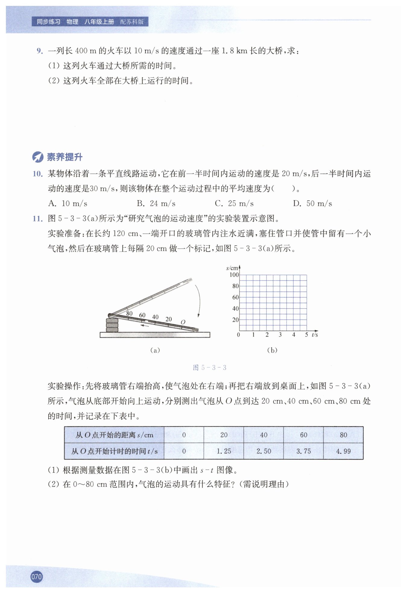 從圖像角度,根據(jù)表格數(shù)據(jù)(0,0)、(1.25,20)、(2.50,40)、(3.75,60)、(4.99,80)描點連線,得到的$s-t$圖像近似為過原點的一條直線,表明路程與時間成正比;從速度計算角度,各段路程的速度分別為: