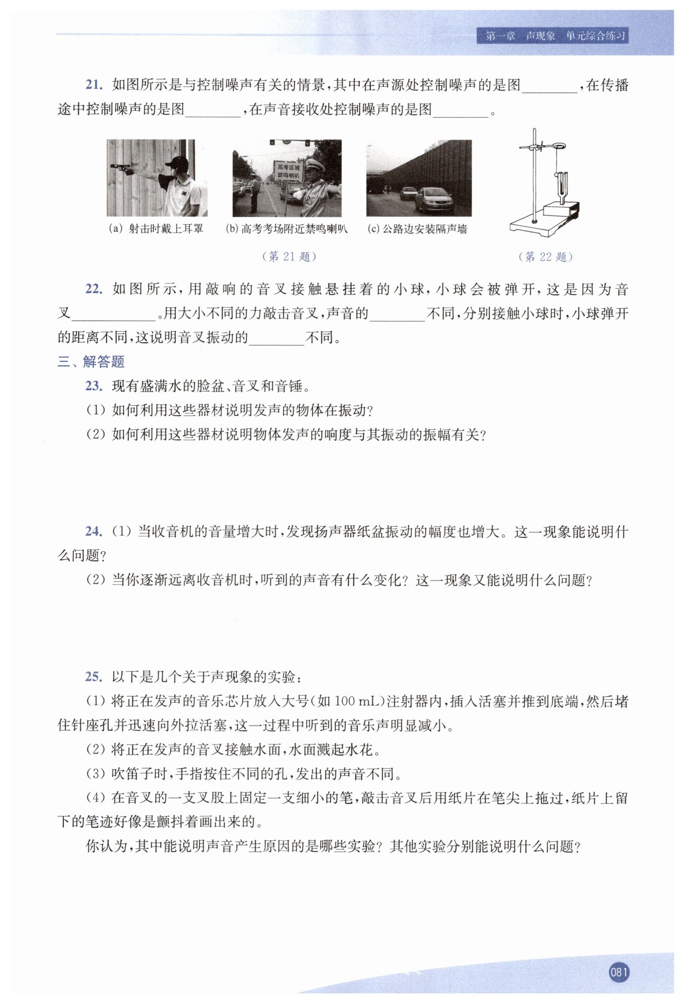 (1)用音錘敲擊音叉,聽(tīng)到音叉發(fā)出聲音,將發(fā)聲的音叉接觸水面,看到水面濺起水花,說(shuō)明音叉在振動(dòng);(2)輕敲音叉,聲音小,濺起水花的高度低;重敲音叉,聲音大,濺起水花的高度高。