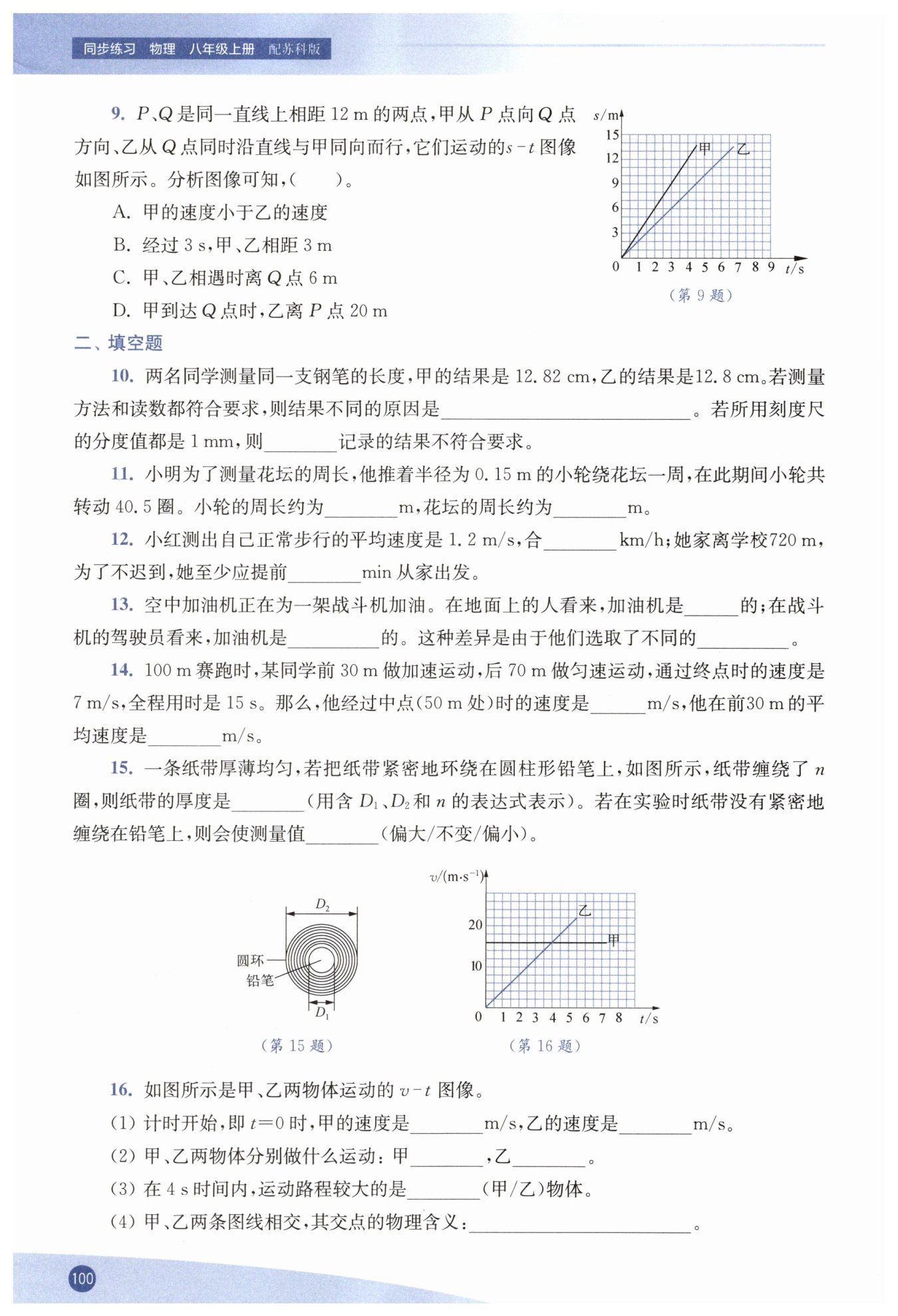 D. 甲到達Q點用時4s,乙運動的距離$s_{乙}=v_{乙}t=2\ m/s×4\ s=8\ m$,乙離P點距離$12\ m+8\ m=20\ m$,D正確。