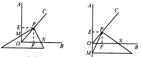 ?$(2)$?過點(diǎn)?$P {作}PE⊥OA$?于點(diǎn)?$E,$??$PF⊥OB$?于點(diǎn)?$F$?
