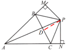 ∵?$OC$?是?$∠AOB$?的角平分線,∴?$PE=PF,$??$∠PEM=∠PFN=90°$?