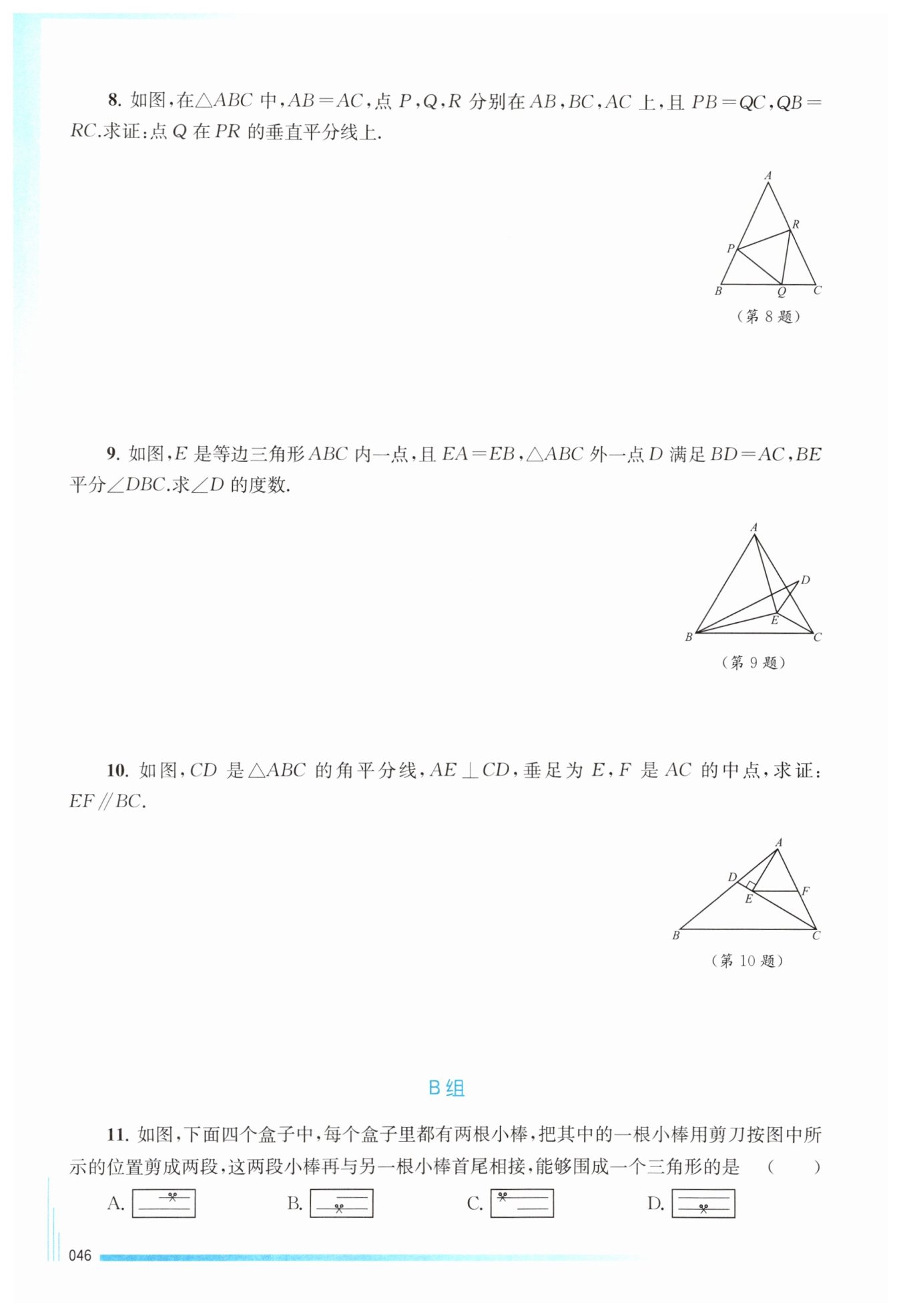 ?$\begin {cases}{P B=Q C}\\{∠B=∠C}\\{Q B=R C}\end {cases}$?