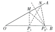 如圖,當?$OM=x=4$?時,過?$M$?作?$MP_{1}⊥OB$?于?$P_{1}$?