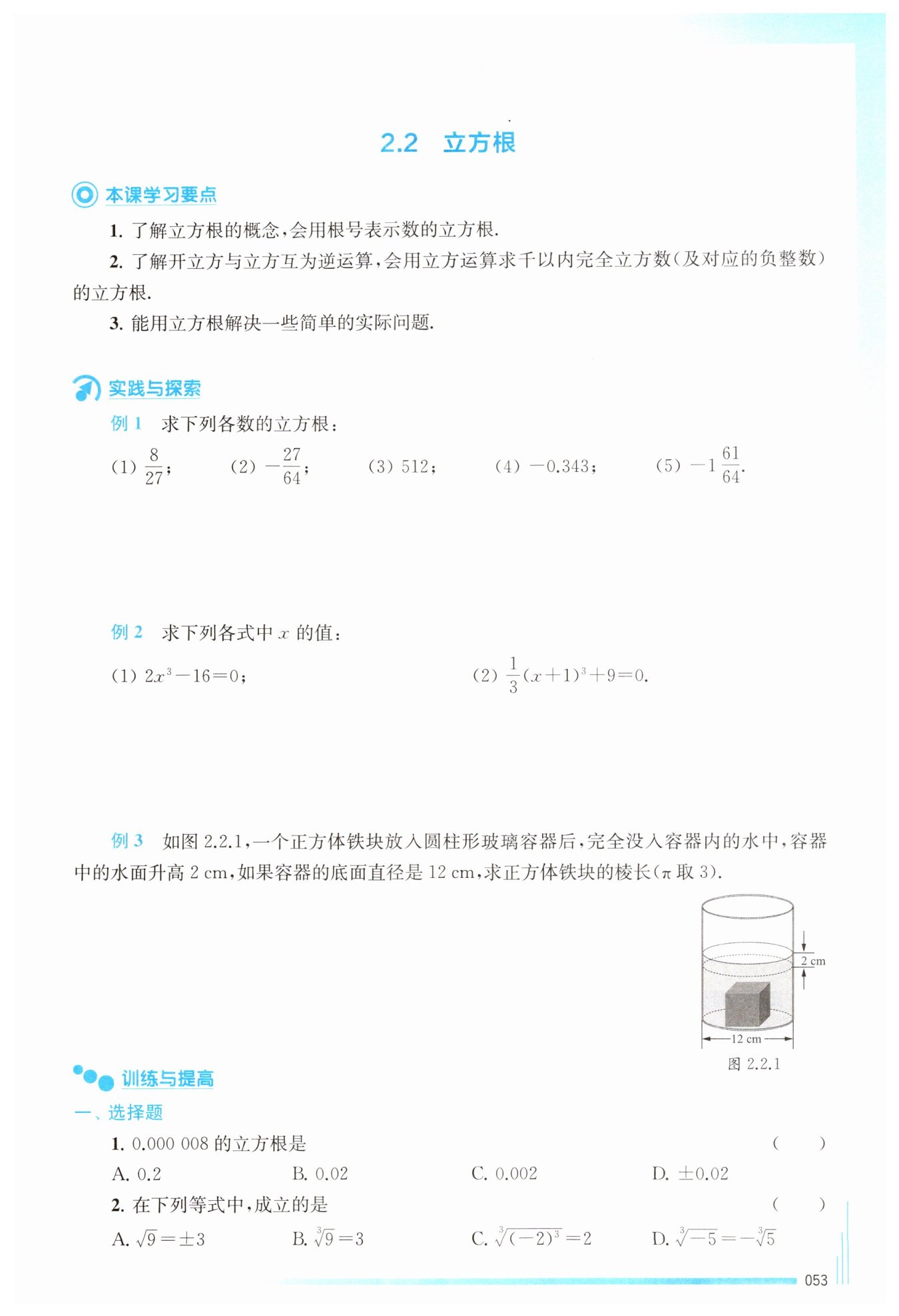 ∴正方體鐵塊的棱長為?$\sqrt [3]{216}=6\ \mathrm {cm}$?