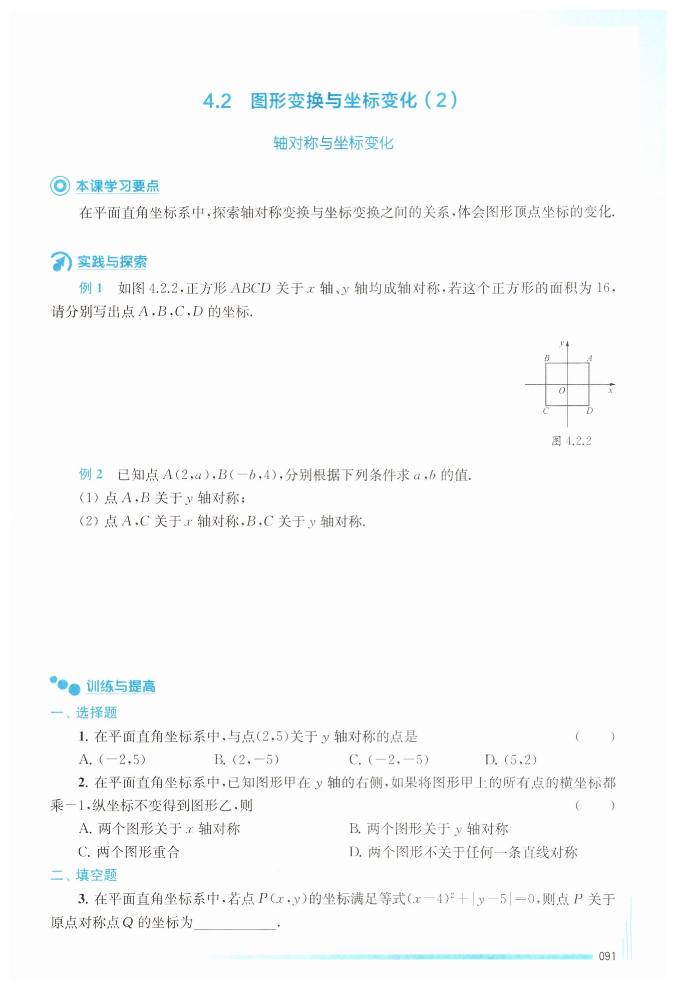 ?$ (2)$?點(diǎn)?$A,$??$C$?關(guān)于?$x$?軸對稱,∴?$C(2,$??$-a);$?點(diǎn)?$B,$??$C$?關(guān)于?$y$?軸對稱,∴?$C(b,$??$4)$?