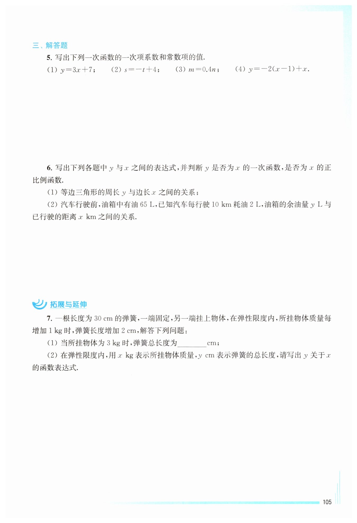 解:?$(1) y = 3x ,$?是一次函數(shù),也是正比例函數(shù)