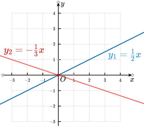 ?$y=\frac 12x$?中,?$y$?隨?$x$?增大而增大;?$y=-\frac 13x$?中,?$y$?隨?$x$?增大而減小