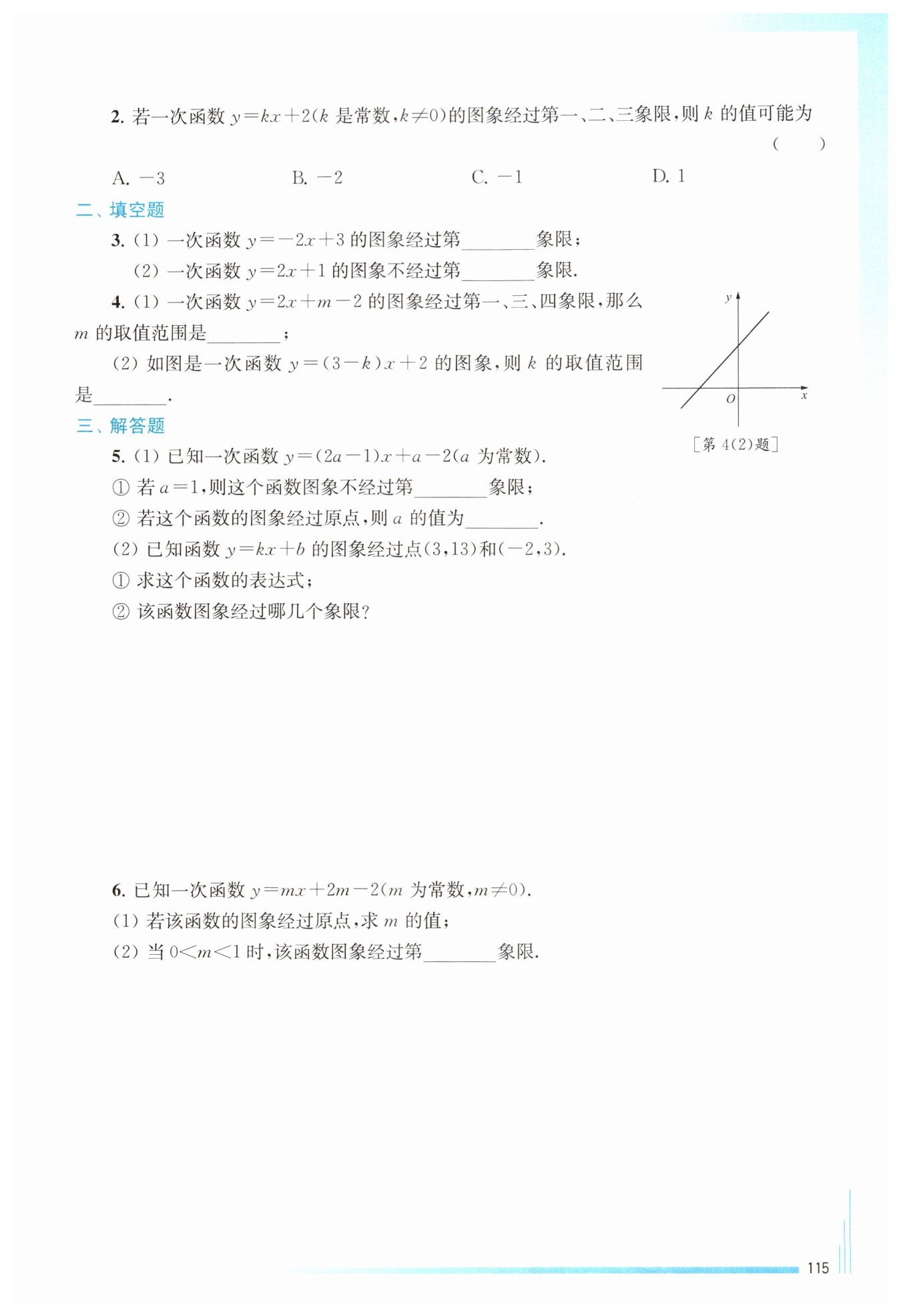 ?$0=m×0+2m-2,$?解得?$m=1$?