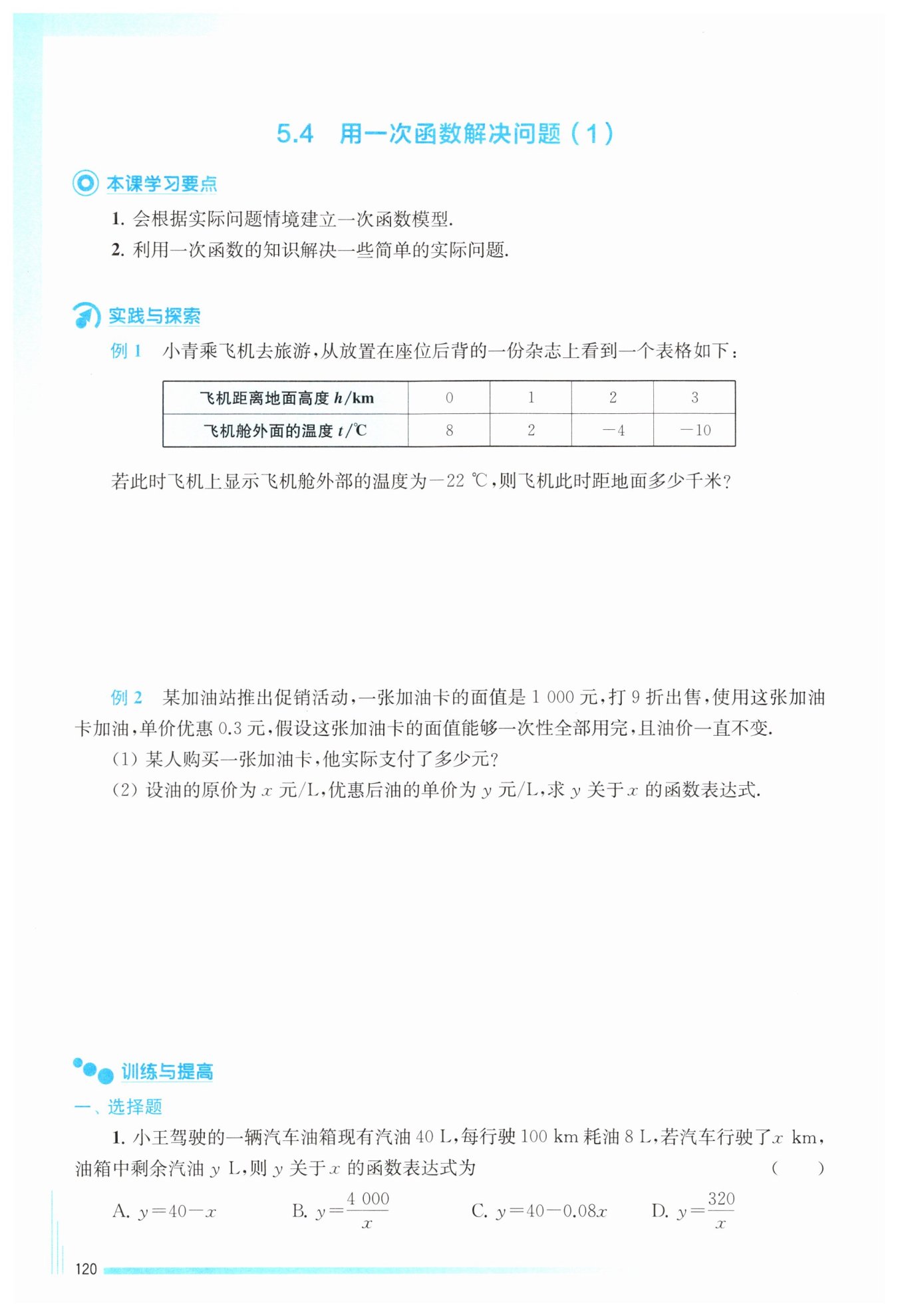 解:設飛機艙外溫度?$ t $?與距離地面高度?$ h $?的函數(shù)關系為?$ t = kh + b $?