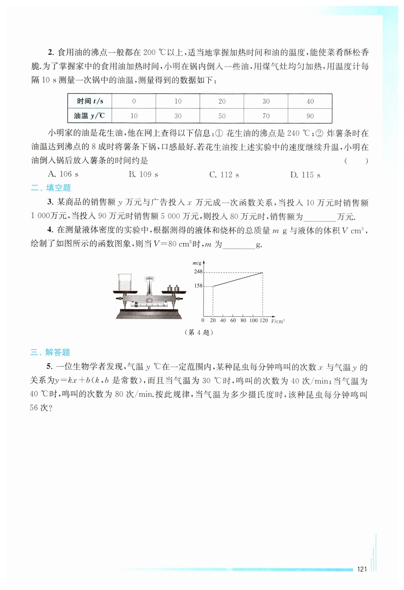 解:設(shè)昆蟲(chóng)鳴叫次數(shù)?$ x $?與氣溫?$ y $?的關(guān)系為?$y= kx + b $?