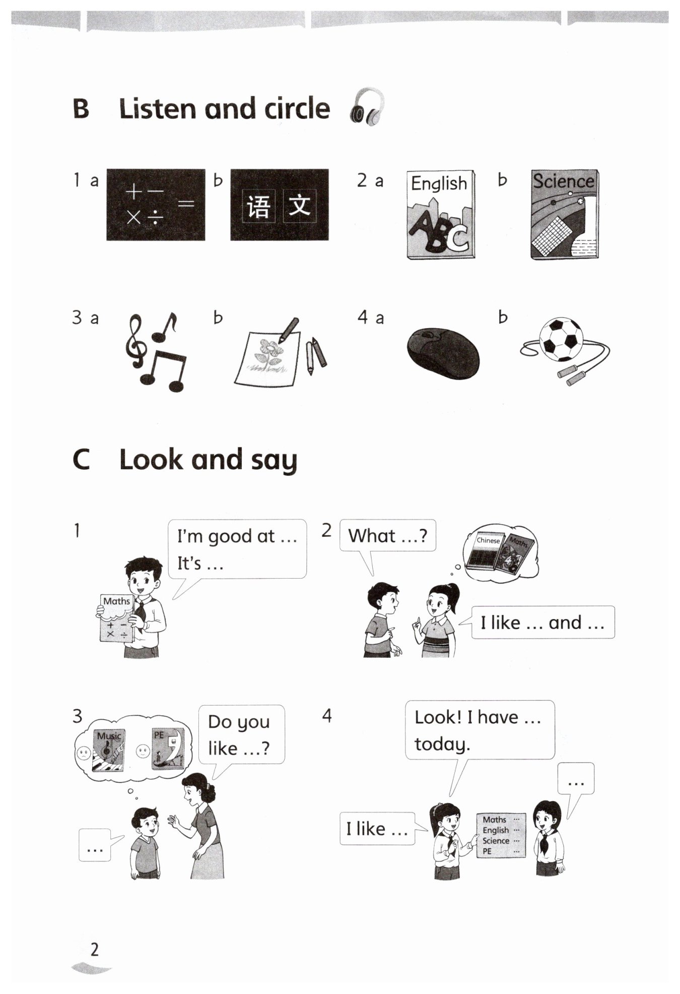 4.— Look! I have Maths, English, Science and PE today. —I like PE. —I like English.