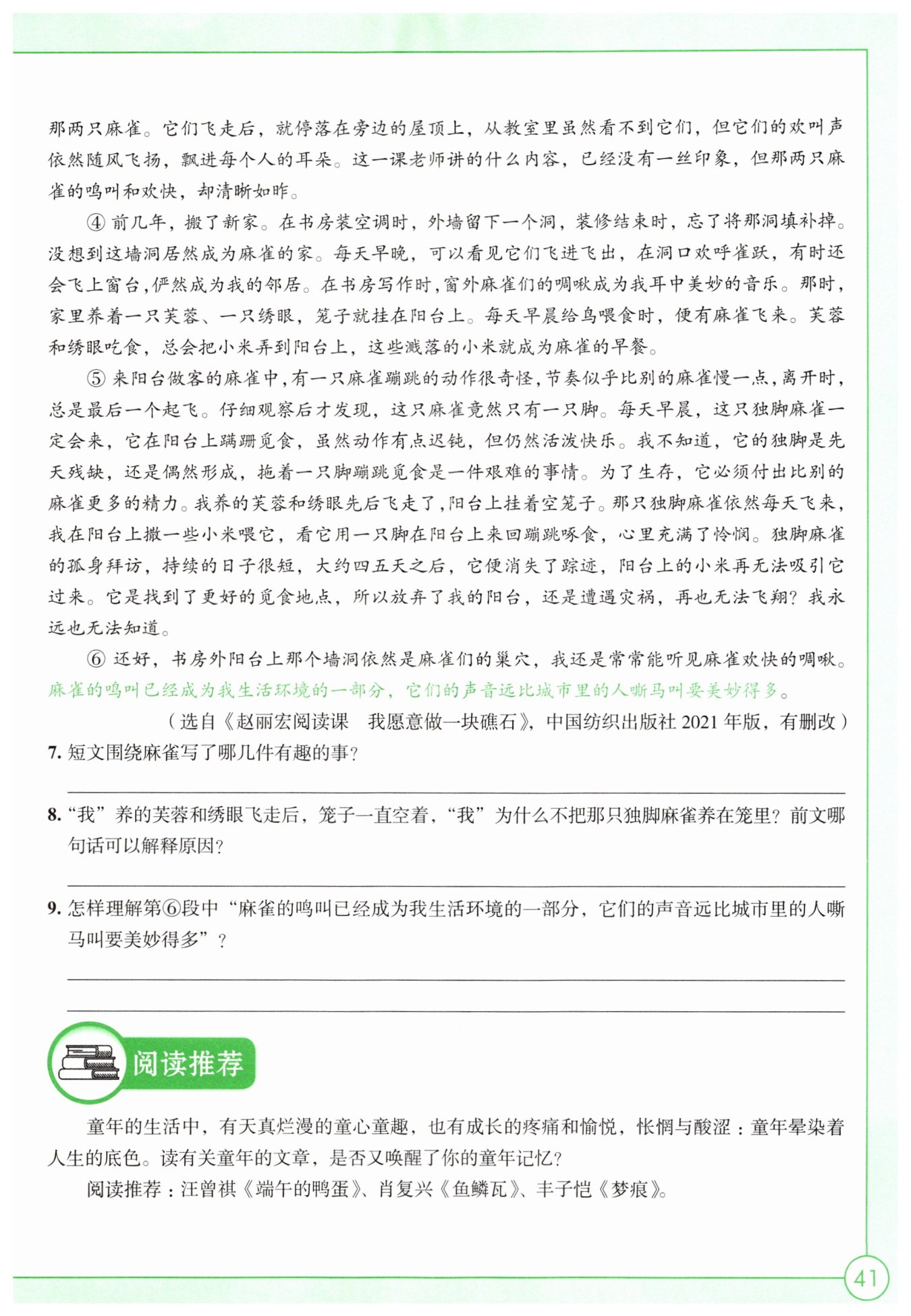 ①麻雀是“我”的鄰居,它們是活潑的生命,是自然的精靈,它們的叫聲是自然饋贈的音樂。 ②麻